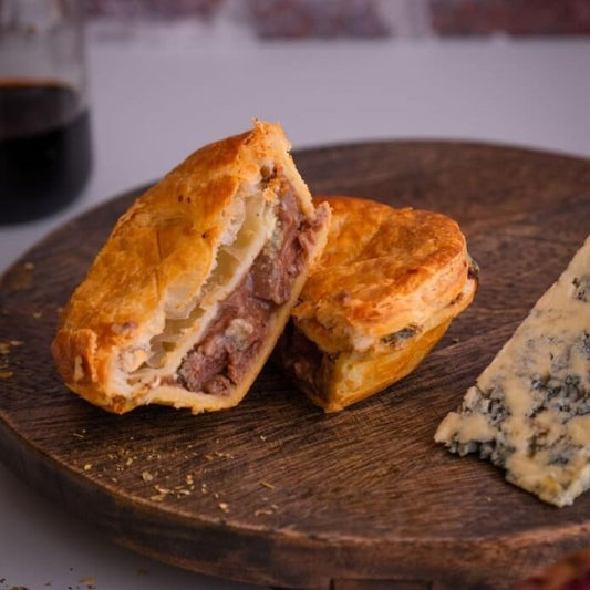 One of our pie rockstars for sure. Angus beef topped with a cubes of vintage blue Vein cheese. Our signature award-winning pie.